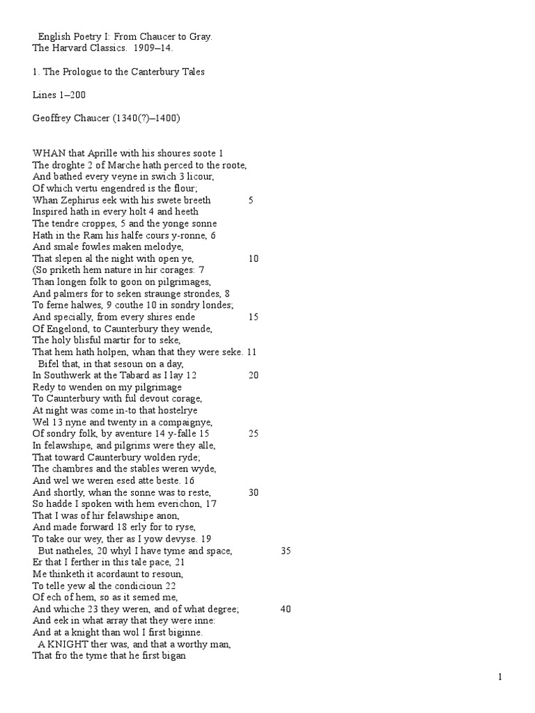 This site provides materials for Harvard Universitys Chaucer classes in the Core Program the English Department and the Division of Continuing Education. There is no more to be told. Honor conquers all Though the campaigns listed below were real and though it was perhaps just possible for one man to have been in them all the list is probably.